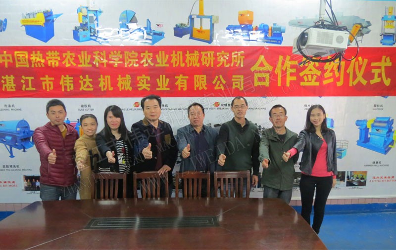 Noong umaga ng Pebrero 15, 2017, itinatag ang “Innovation Center for Natural Rubber Processing Machinery” (tinatawag ding “Innovation Center”) sa pamumuno ng Institute of Agricultural Machinery, Chinese Academy of Tropical Agricultural Sciences, kasama ang Zhanjiang Weida Machinery Industrial Co., Ltd. (tinatawag ding “Weida Machinery”). Ginanap din ang seremonya ng paglagda ng kasunduan sa parehong okasyon.