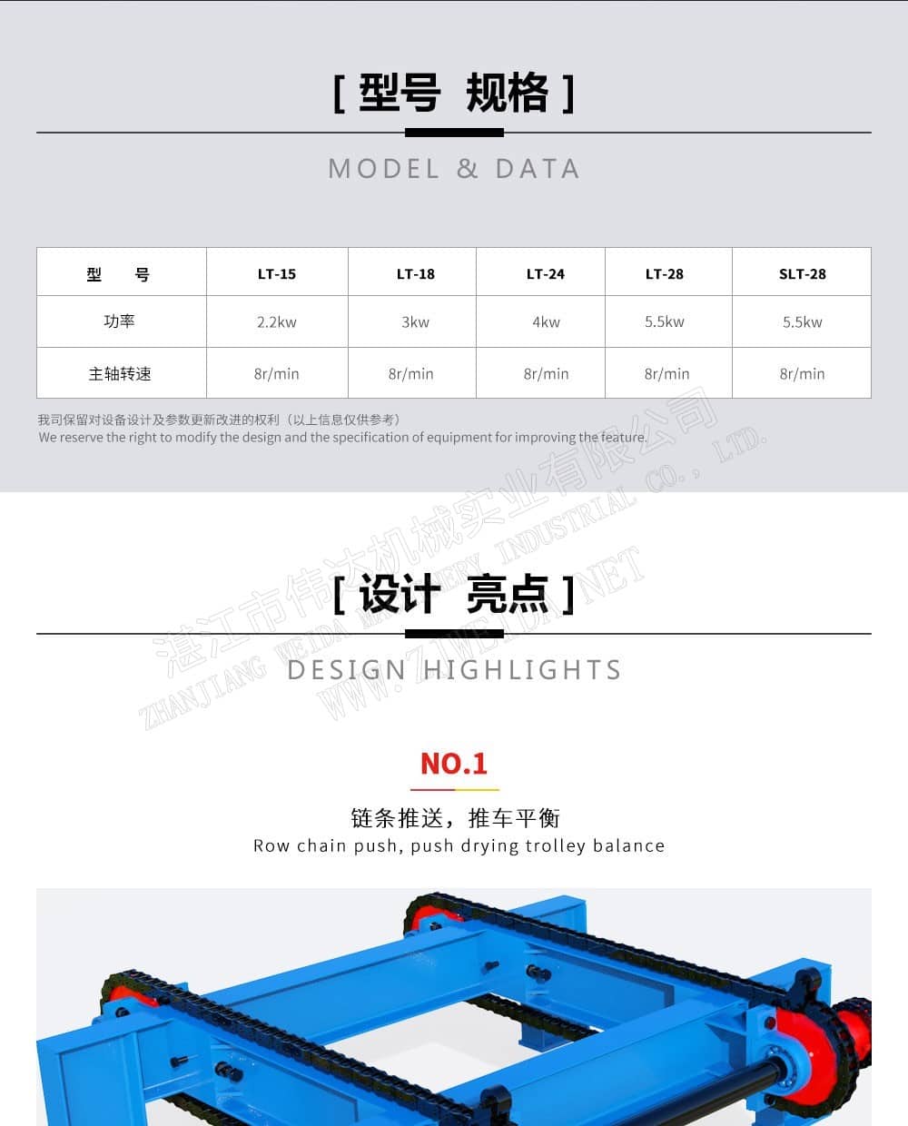 传动轴通过联轴器在减速米乐|米乐·M6(China)官方网站的带动下旋转,从而带动主被动链轮的转动,推动干燥车进入干燥炉内。